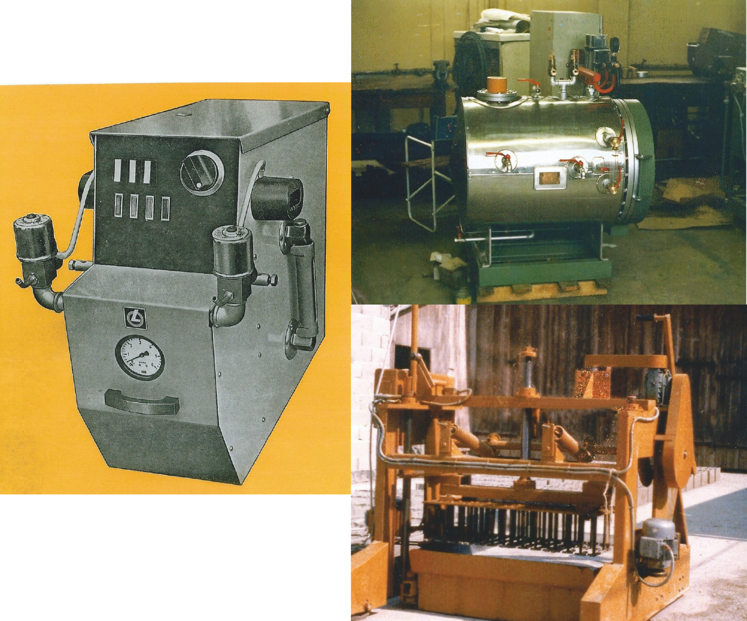 (pegle, manji parni kotlovi), kao i na strojeve za izradu betonskih blokova1995.